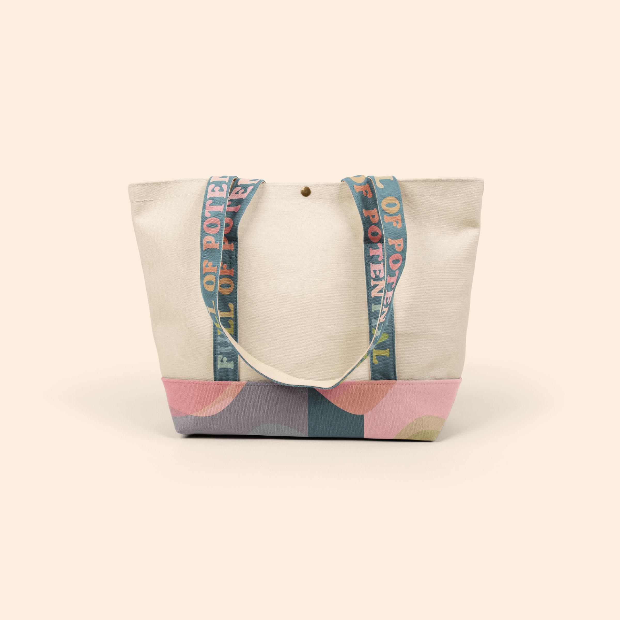 These iconic totes will make a statement on land or sea. Heavyweight 19 oz. natural canvas with our full-color digital print pigment-dyed canvas as the trim.