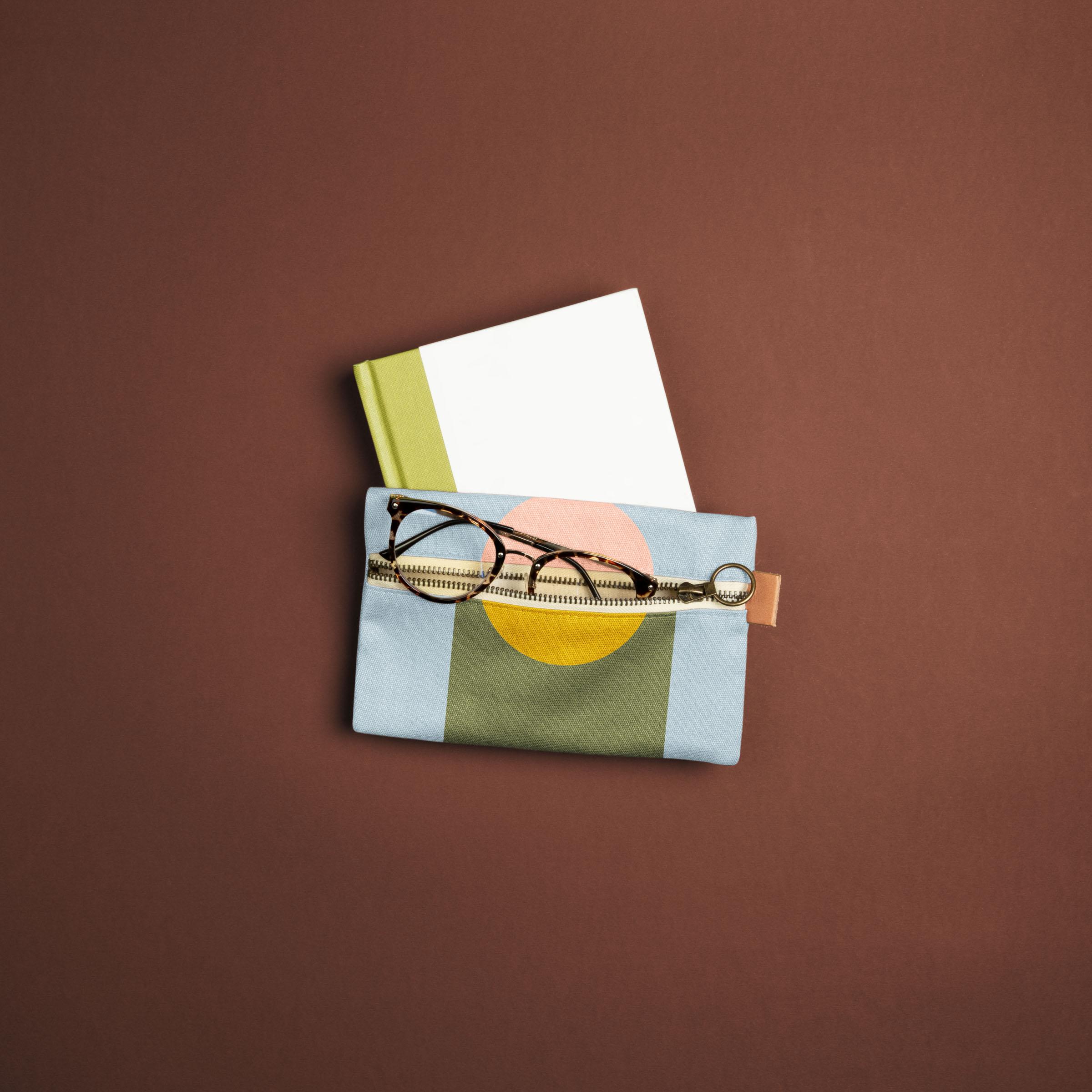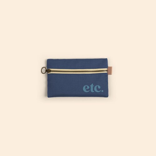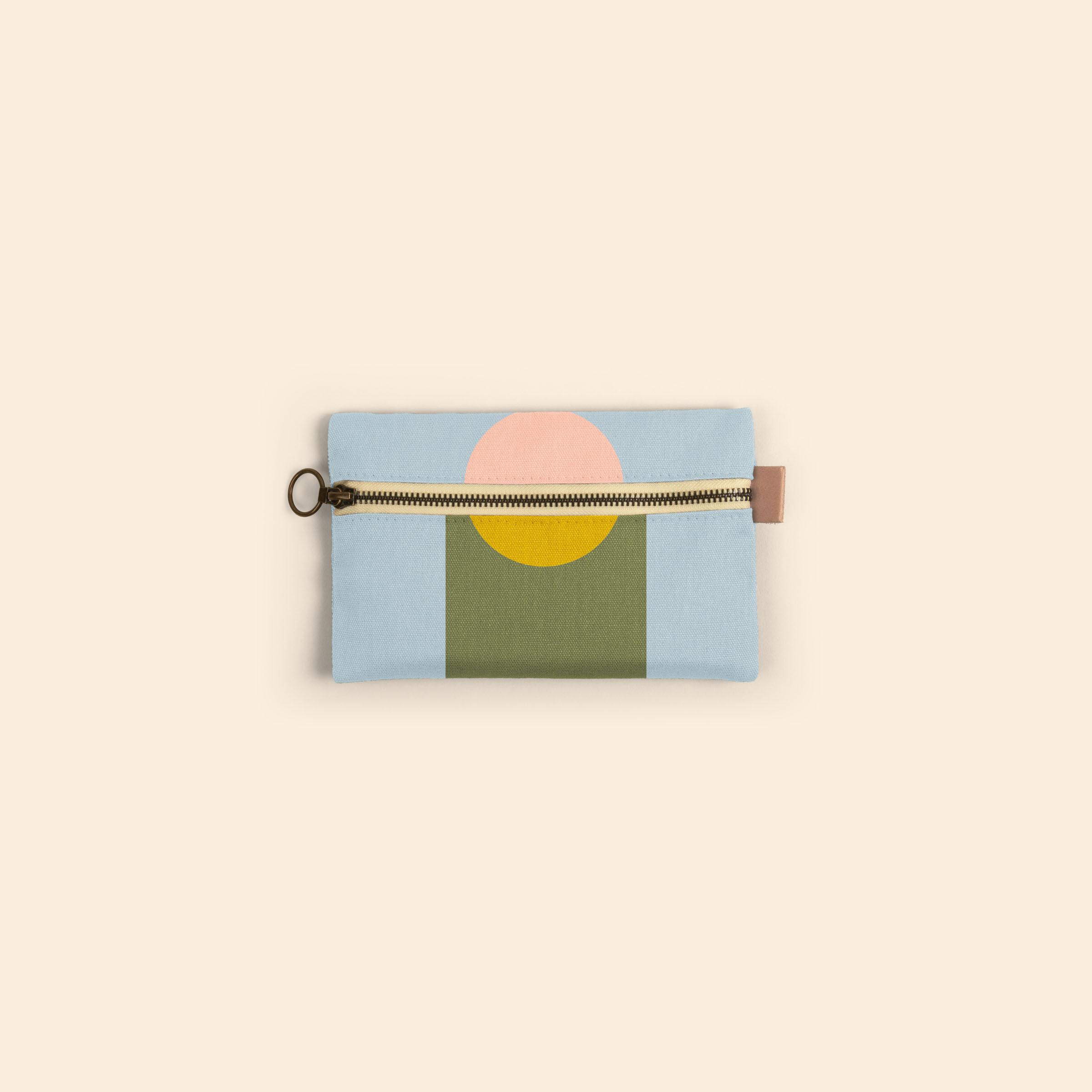 FRONT ZIPPER POUCH SMALL - COLORED CANVAS WITH LEATHER TAB