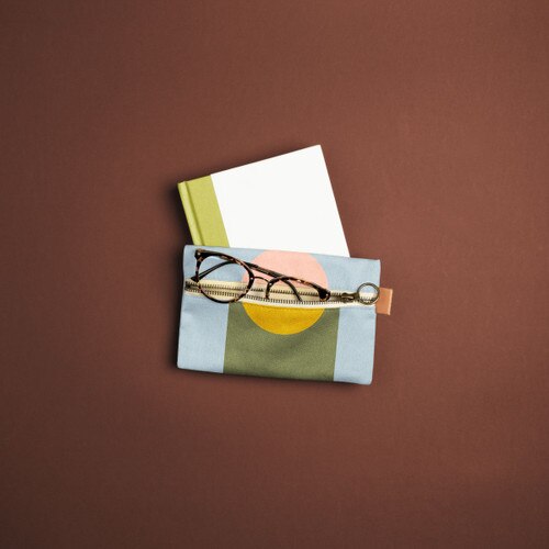 Front Zipper Pouch, Small, Colored Canvas w/Leather