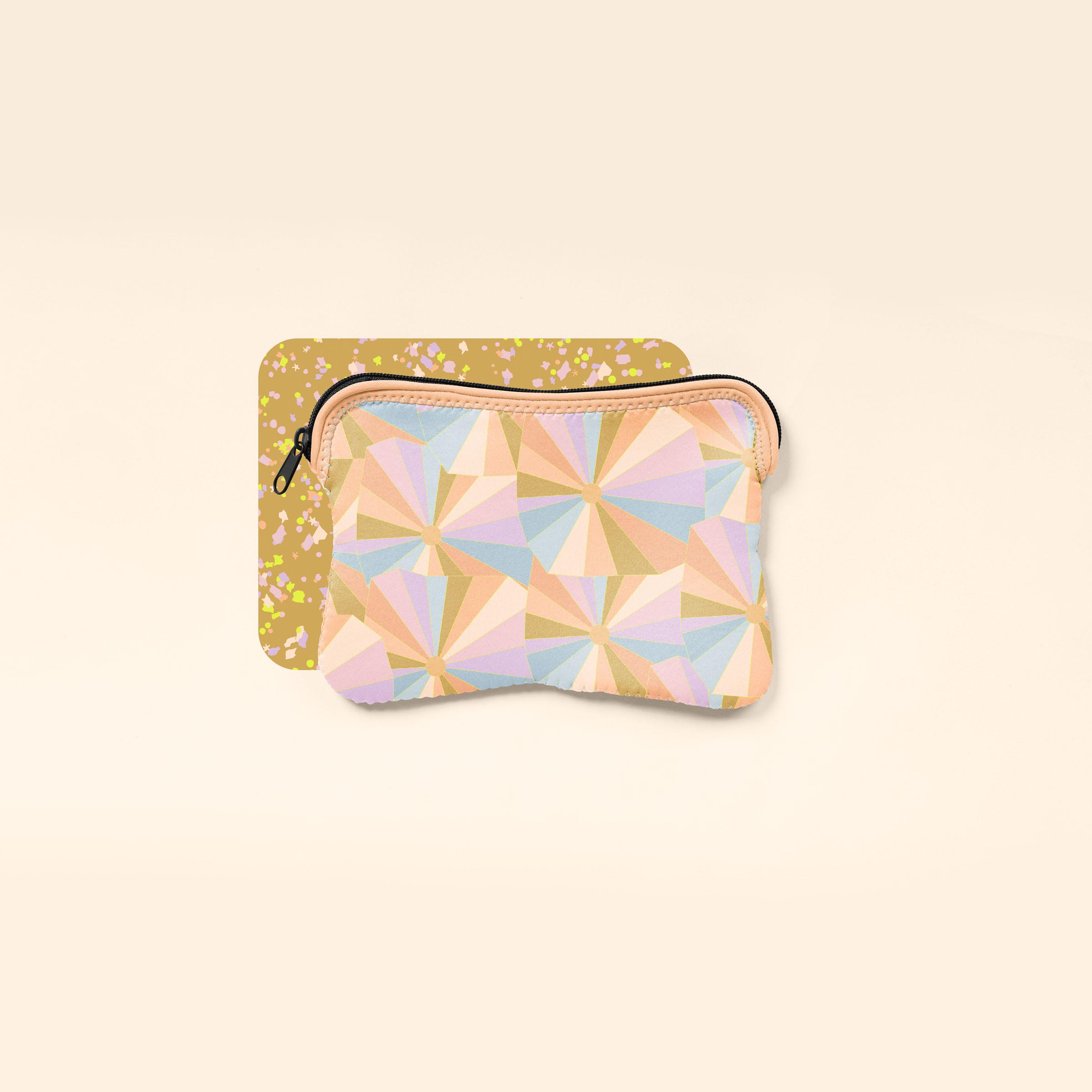 High-Quality Neoprene ( Wetsuit Material ) Zipper closure with customizable colored stitching and bias trim at the top. Fits first, second, and third generation iPad. Includes a full bleed four-color process sublimation imprint on entire product including inside fabric.