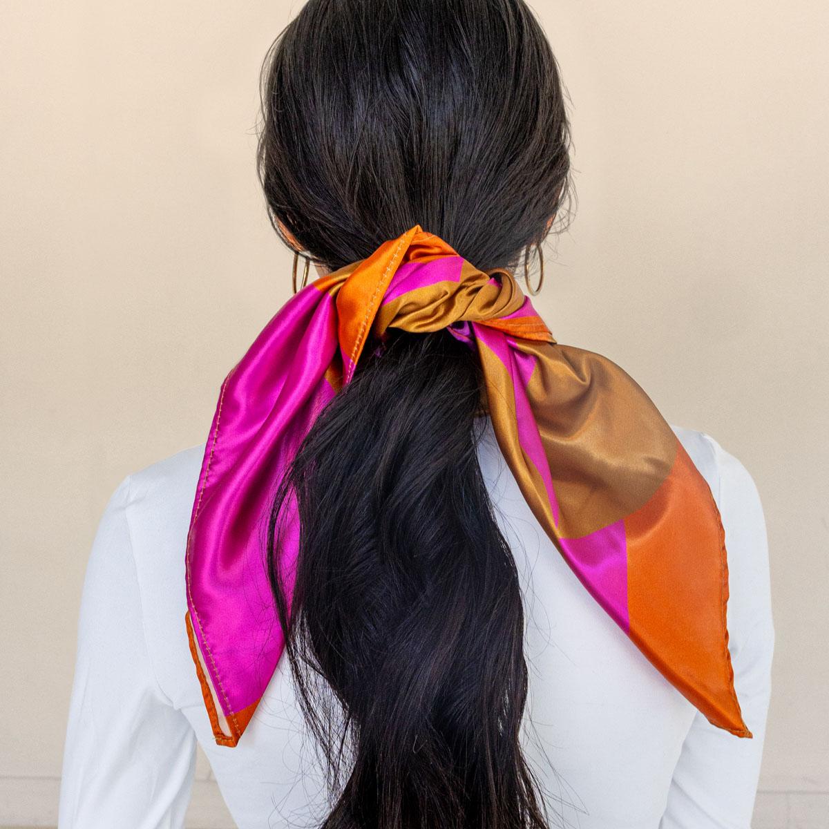 The smooth operator of accessories. Made from our Mimic fabric, the Slip Scarf is soft, glossy, and endlessly versatile. Wear it around your neck, tie it in your hair, wrap it on a tote, or turn it into a new accessory for your wrist. Gentle on the hair (no snags of frizz), super soft, and fully customizable in full color. It's the do-it-all piece your outfit craves.