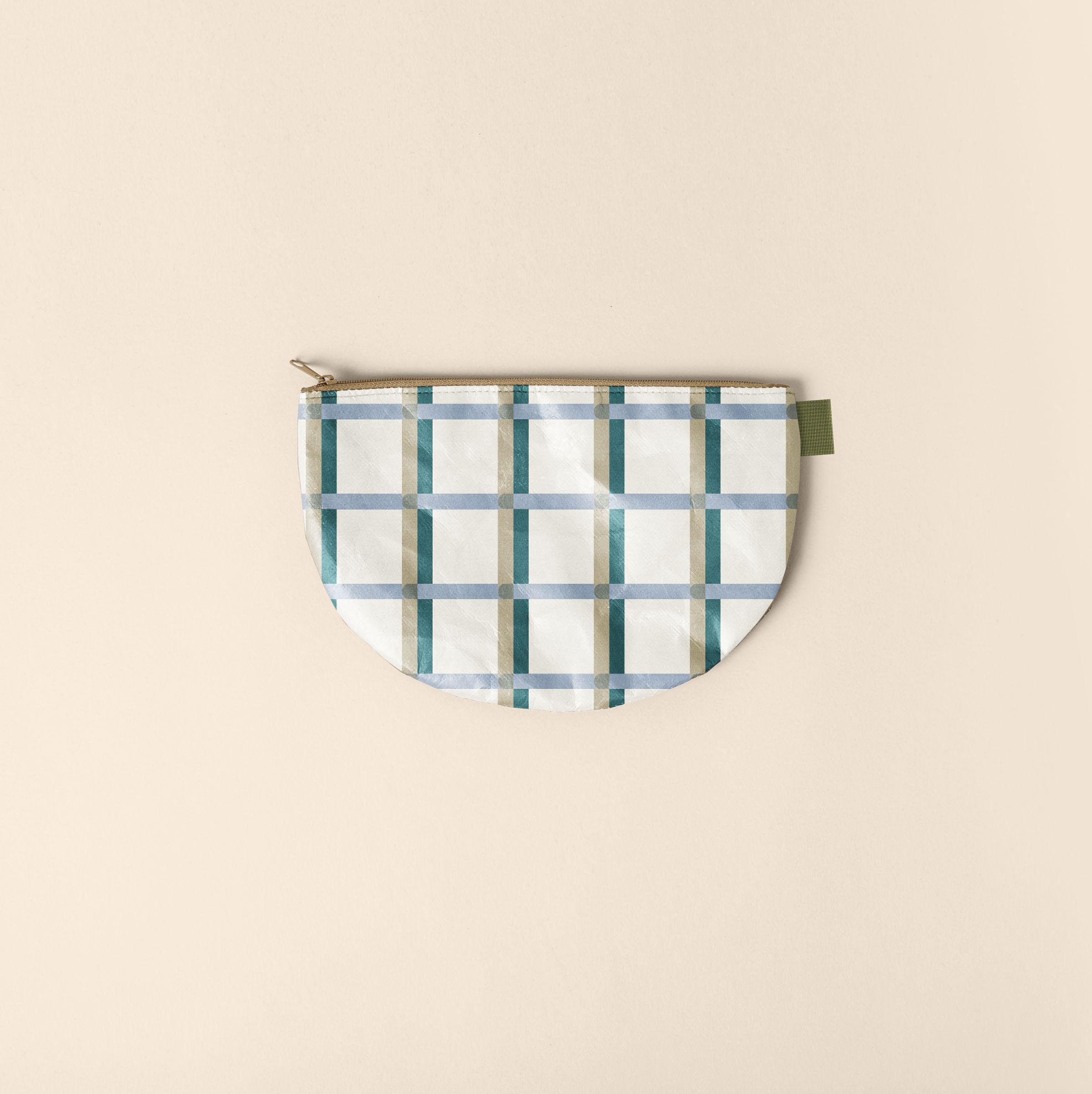 The Slice Pouch is a flat, half-moon shaped pouch with a zippered closure. It's unique shape allows space for all of your daily essentials, while still being the perfect size to fit in your everyday bag, or to be your everyday bag.