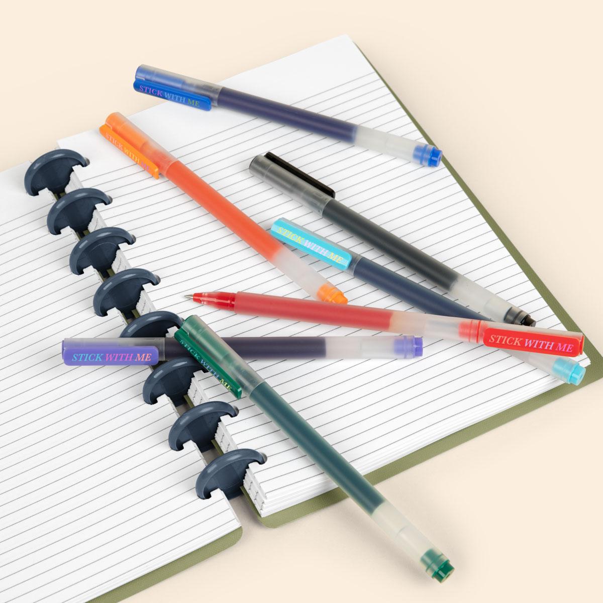 Meet your new favorite everyday pens: the Stick Pens! These smooth-writing gel pens are just like the ones you've seen at your favorite Japanese stationery shop! They come in seven bold, vibrant colors with matching ink and a frosty clear barrel that feels as good as it looks. Customize the clip in full color (4CP) to make it totally yours. Available as singles or in a 7-pack in a crystal clear giftable box, these are the pens you’ll reach for again and again. So bright, fun, and seriously satisfying to write with.