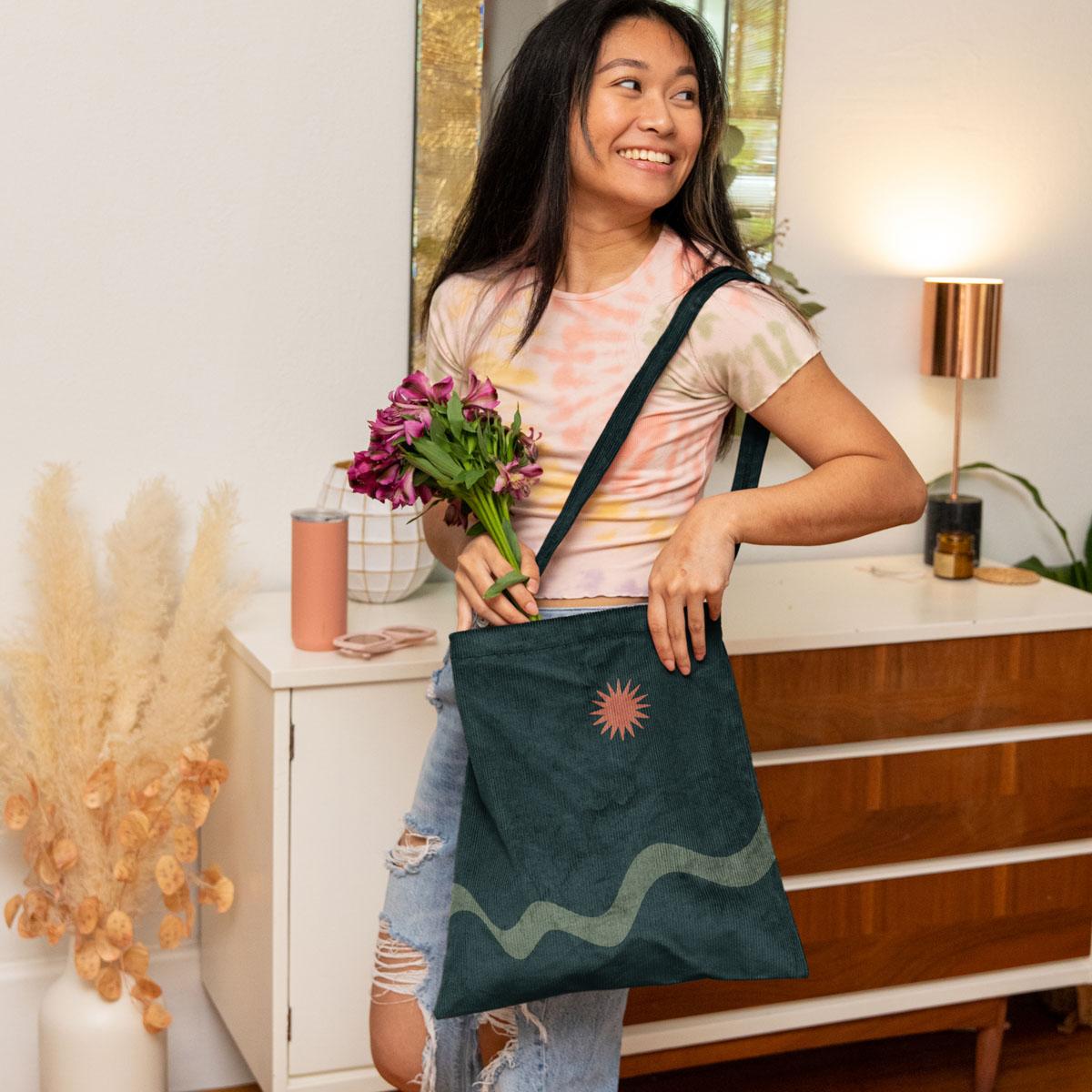 No longer reserved for cool pants and old school blazers, Corduroy is in the house! The rich colors and beloved texture will bring a touch of nostalgia to your sales kit. Everything old is new again; go ahead, hop on this trend! Can be modified to work as a crossbody tote. Contact factory for details.