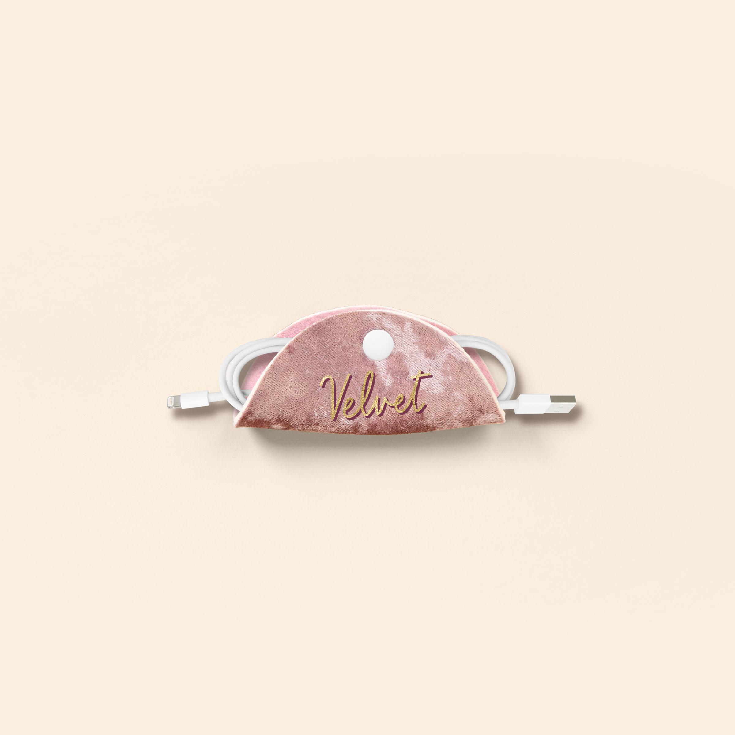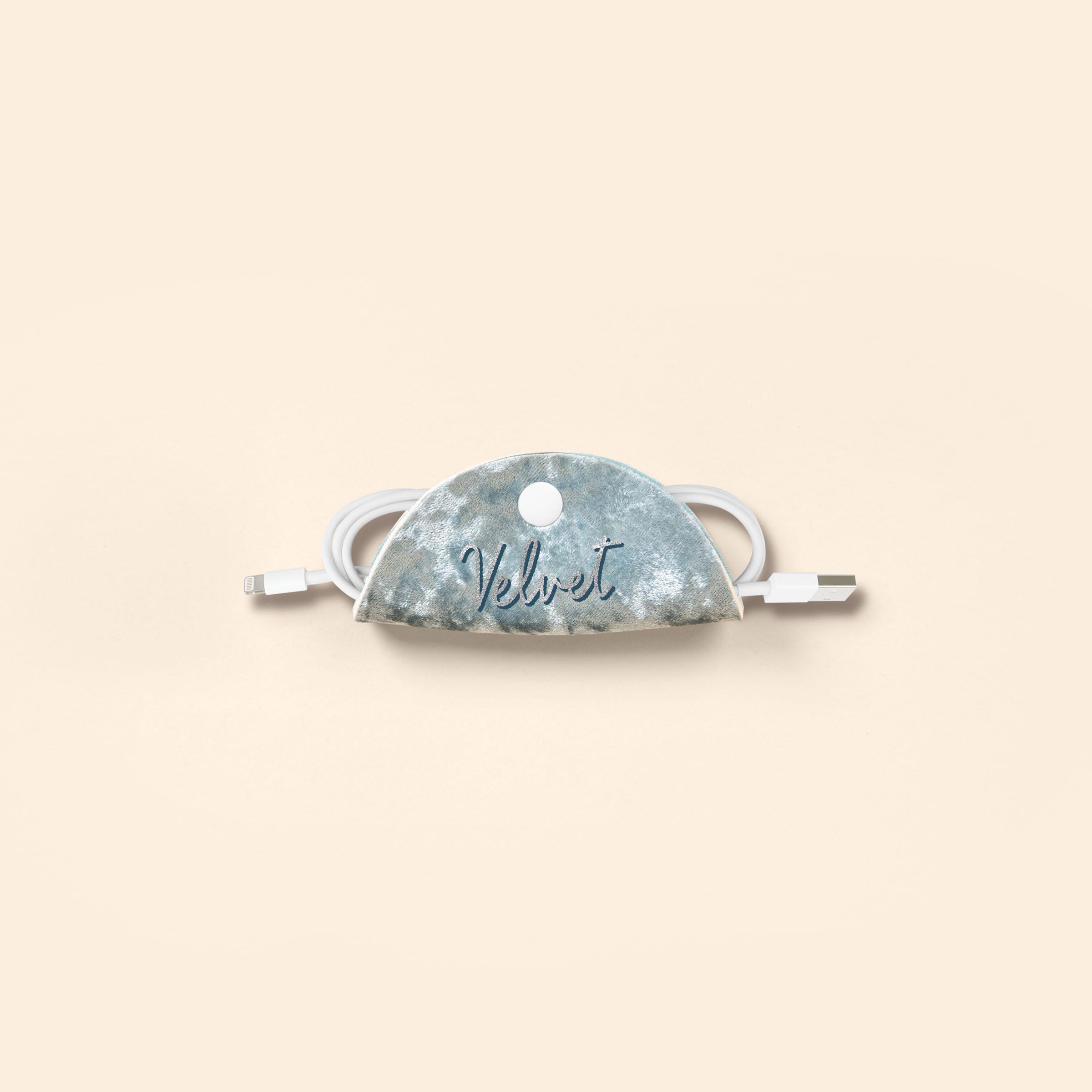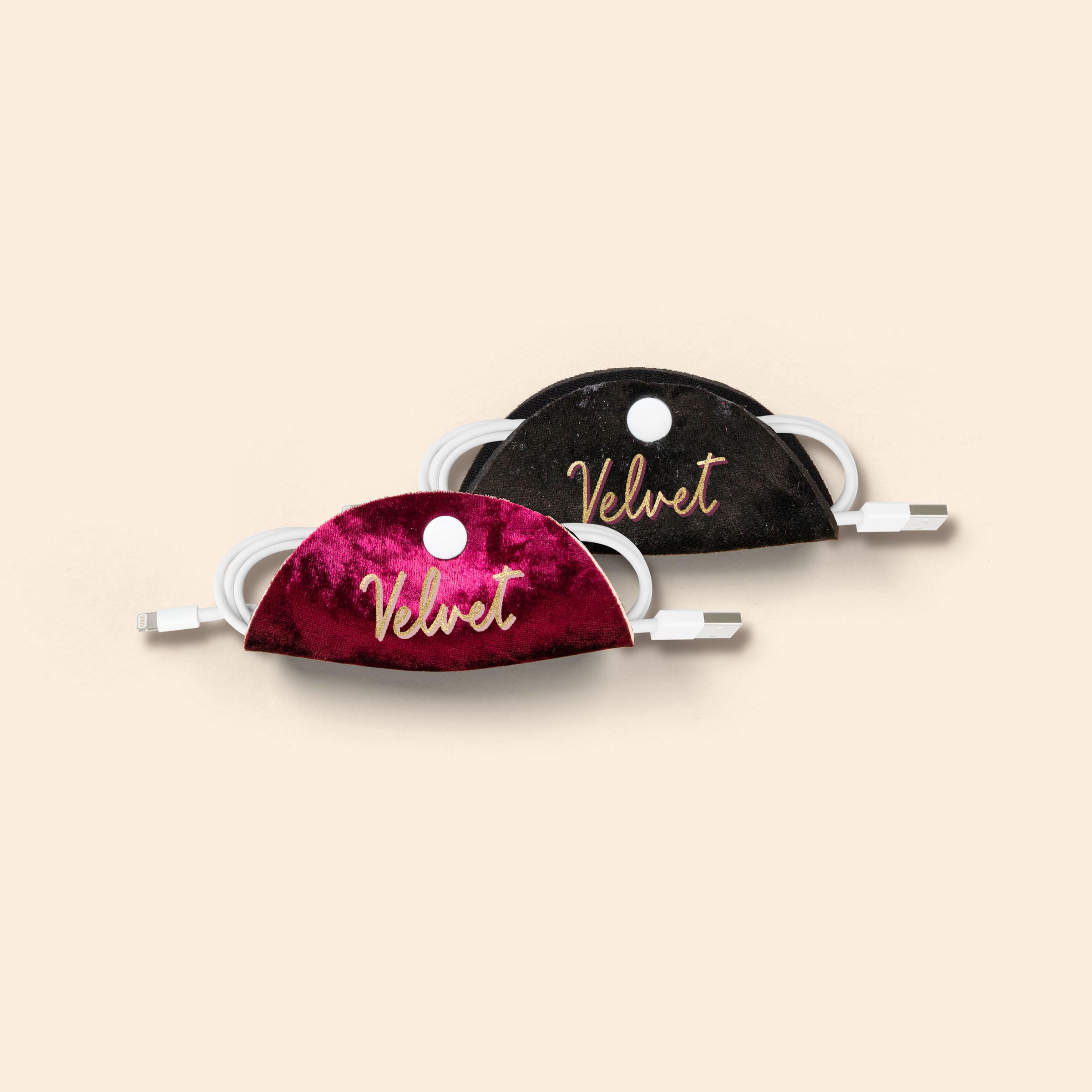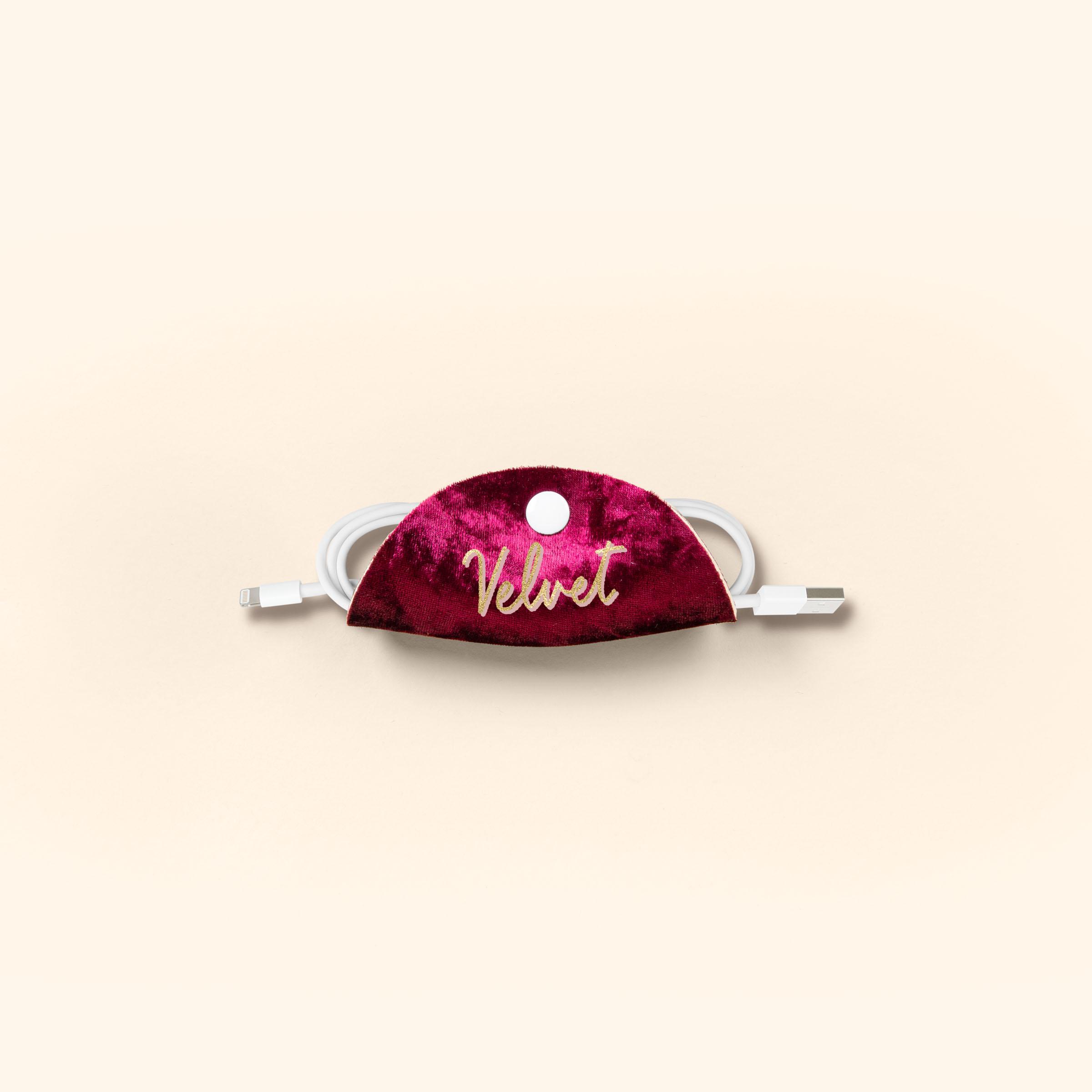 The Tech Taco is exactly what it sounds like; a taco for your technologies! It's an organizational tool that will help keep your cords and cables in order. Fold it around your bundled cords like a taco shell, snap, and you're on your merry way. Covered in a velvet neoprene material.