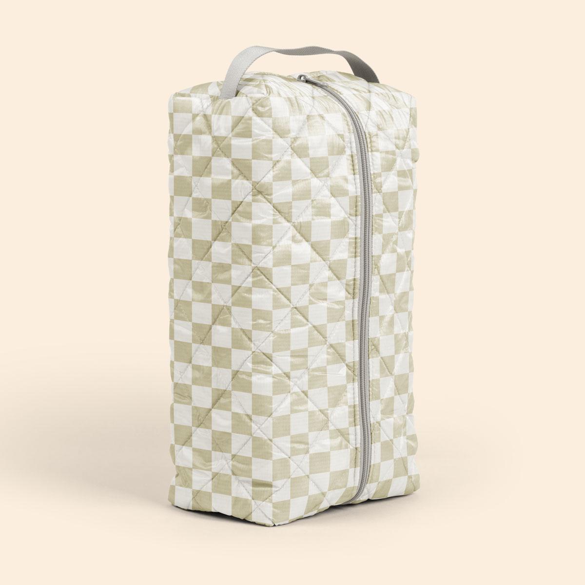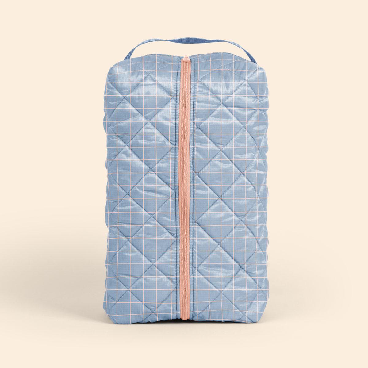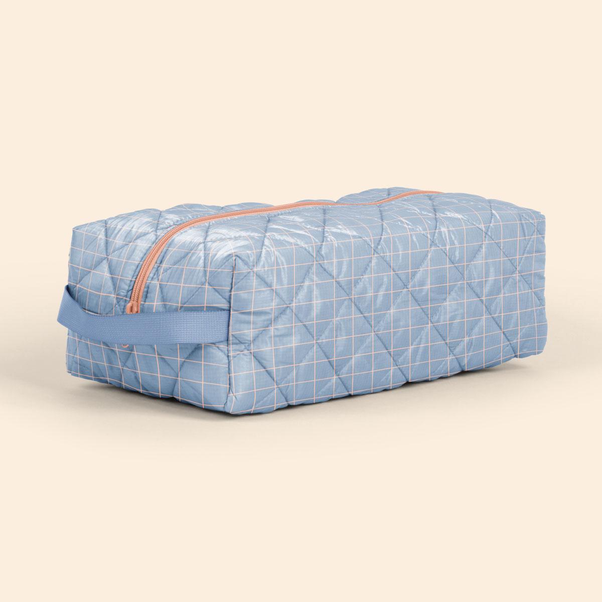 This pouch is as functional as it is big, with a shape that makes it easy to pack, stack, and carry. Puff Puff is reminiscent of your favorite cold weather jacket or quilted blanket- warm and cozy but also cool and comfy. Our quilted material starts with a super soft 30D ripstop shell with a DWR water-repellent finish. It's 100% recycled material that uses half the energy to produce compared to typical recycled materials. The super soft pillowy feel comes from our 90% recycled filler.