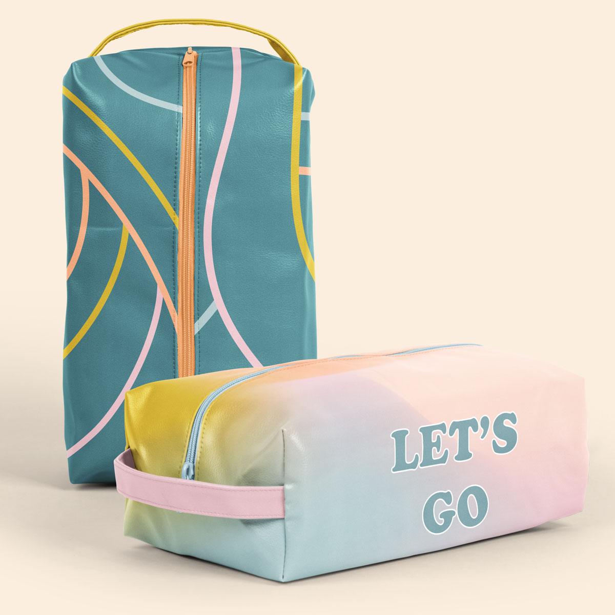 Our vegan leather brings all the style of the real thing- minus the guilt. It features a smooth, leather-like exterior with a luxe, suede-like backing that adds structure and softness in all the right places. With crisp seam-to-seam full-color digital print, it’s the perfect canvas for bold branding and elevated impressions. Your Dopp kit might just be the most luxe item in your luggage.